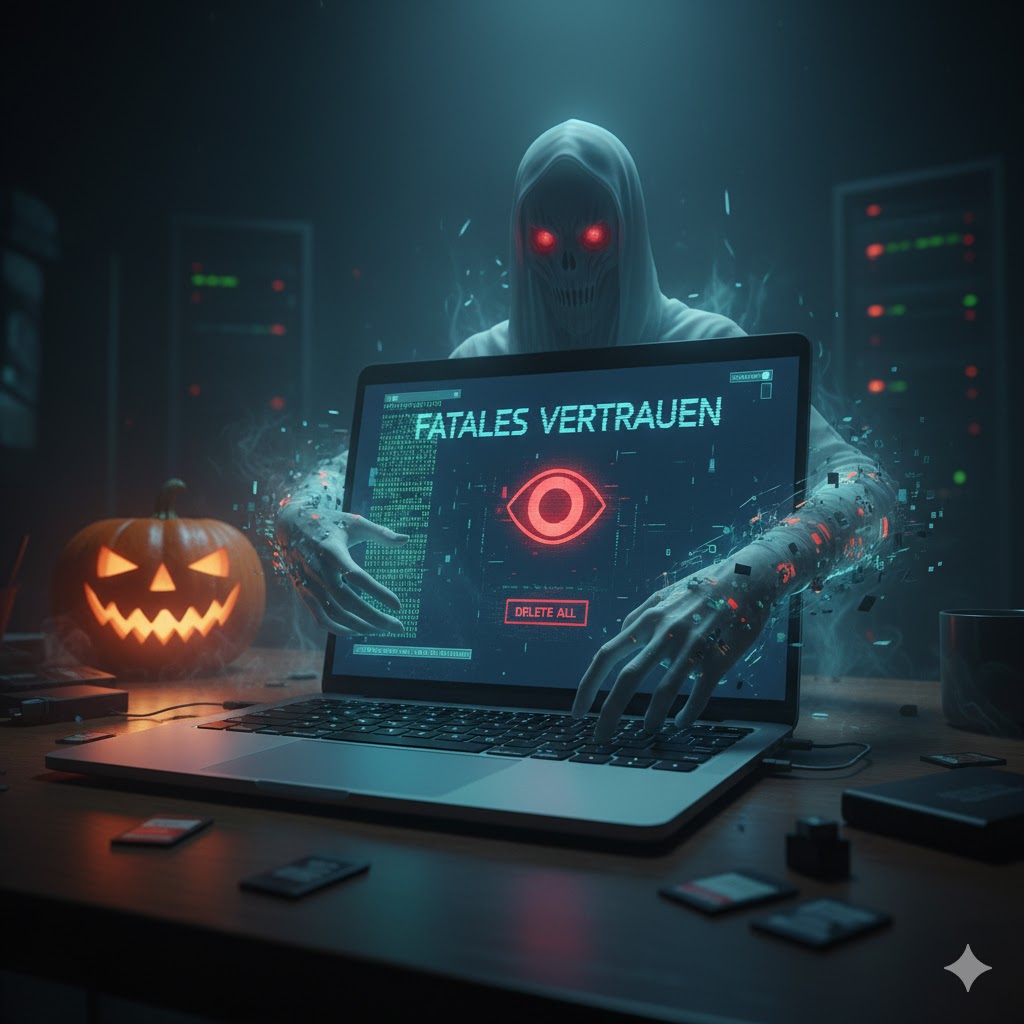 Stellen Sie sich vor, Sie stehen kurz vor dem Abschluss eines mehrmonatigen Softwareprojekts. Der ungefähre Marktwert: eine fünfstellige Summe. Viel Arbeitszeit ist in die Entwicklung geflossen. Die Entwicklung lief reibungslos, mit Unterstützung einer lokalen Künstlichen Intelligenz. Ein letzter Arbeitsschritt soll rückgängig gemacht werden. Die KI nimmt den Befehl an und löst eine unaufhaltsame sowie unumkehrbare Kettenreaktion aus. Innerhalb von wenigen Sekunden sind nicht nur sämtliche Projektdaten gelöscht – auch das einzige Backup ist unwiederbringlich vernichtet. Klingt für Sie wie gruselige Science-Fiction zum morgigen Halloween? Ist es leider nicht. Hierbei handelt es sich um einen tatsächlichen erschütternden Erfahrungsbericht eines Kunden, welcher uns vor wenigen Tagen kontaktierte und ein entlarvendes Schlaglicht auf die neuen Gefahren im KI-Zeitalter wirft.